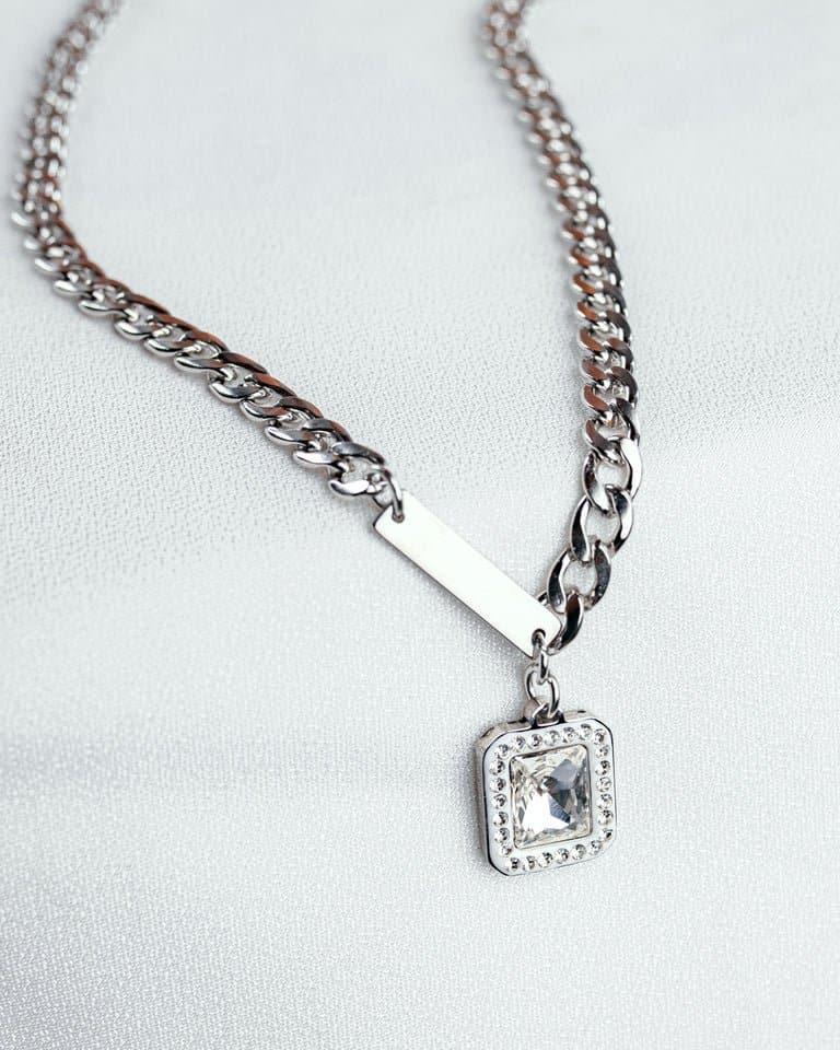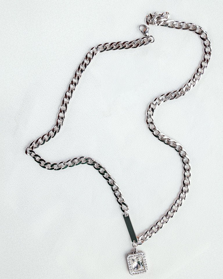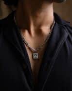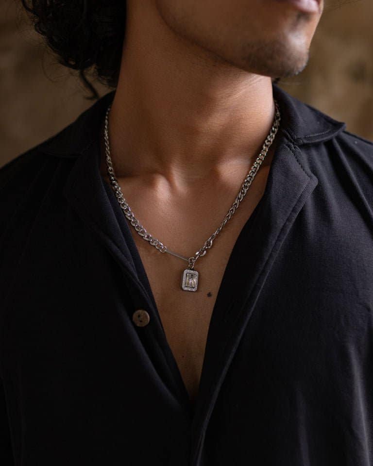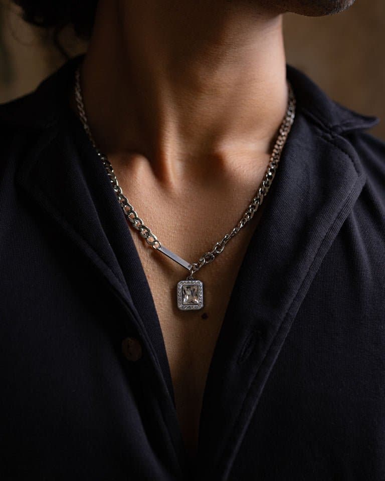 Aarvx silver steel stone necklace chain for men