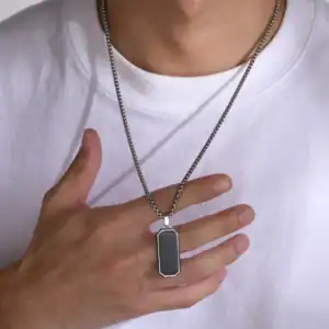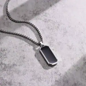 Light Corroded Polygonal Drop Black Gel Pendant Chain